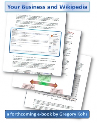 Your Business and Wikipedia is a forthcoming e-book to be published in 2013, by Gregory Kohs. With over seven years of experience as a Wikipedia editor, news maker, and spokesman, Kohs understands the ins and outs of creating, modifying, and manipulating Wikipedia content to better serve the needs of your business. And soon he'll be sharing his astounding and provocative secrets with you.