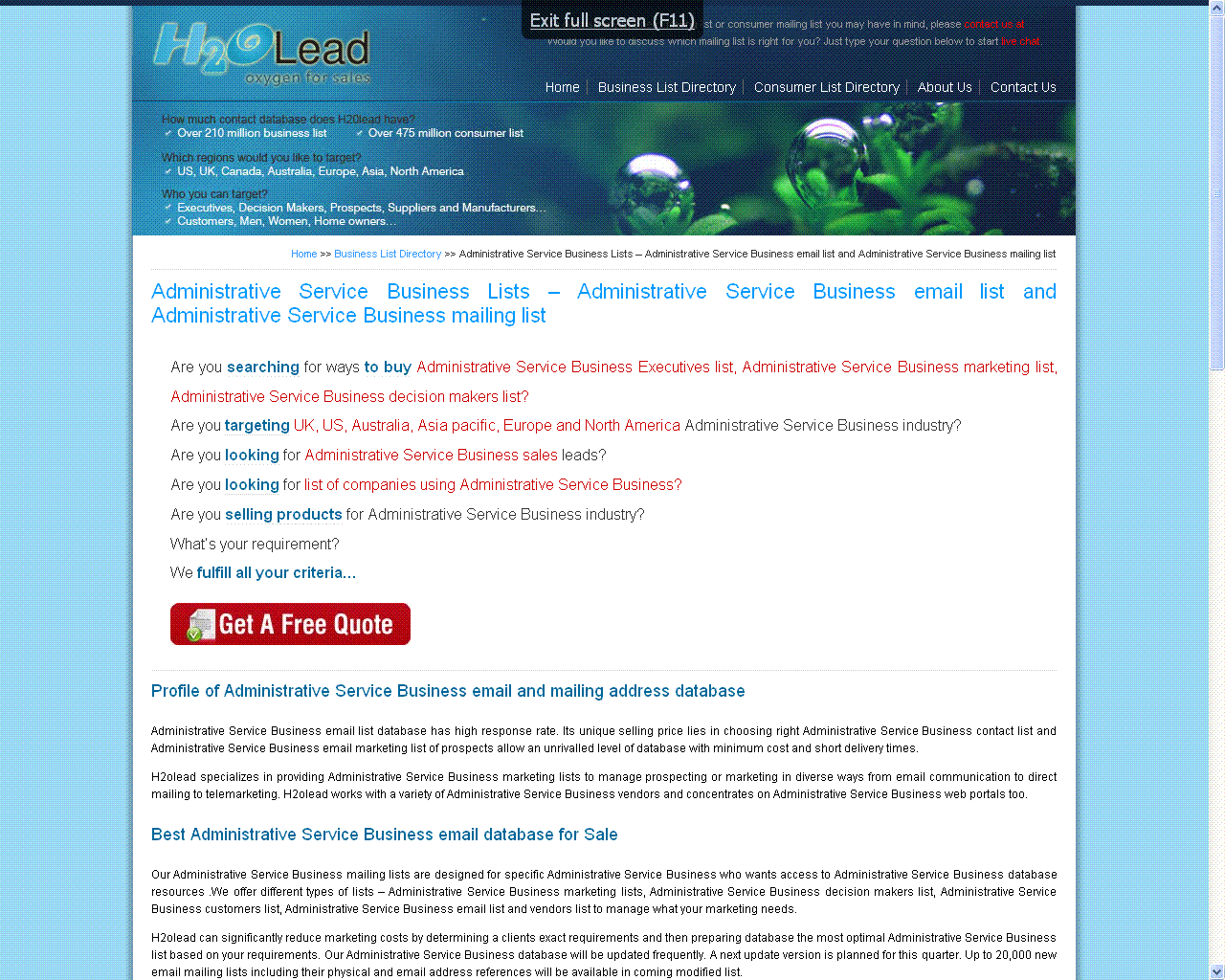 current08:22, 22 February 2011Thumbnail for version as of 08:22, 22 February 20111,280 × 1,024 (140 KB)H2oleads (talk | contribs)Administrative Service Business Email Lists