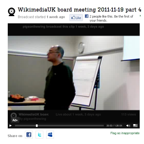 Ashley Van Haeften speaking before the Wikimedia UK board, November 19, 2011, as appearing on http://bambuser.com/channel/pigsonthewing/broadcast/2140981