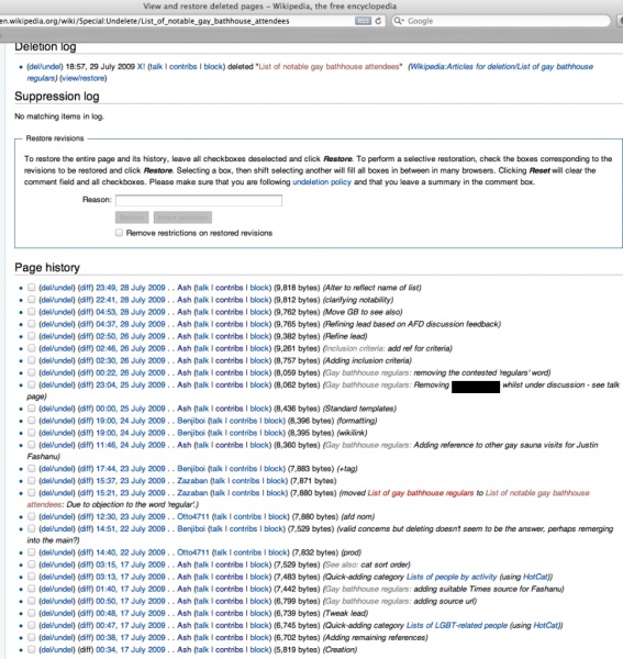 Edit history of the deleted Wikipedia article about gay bathhouse attendees, created by User:Ash.