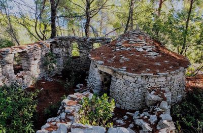 Other circular dry stone buildings which are closest to Korčula are in southern Italy (Trullo). They are in and around the town of Alberobello (in the province of Bari). Also they are found in Istria, called ‘Kazun’ which is also in Croatia.