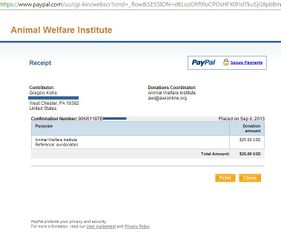 Animal Welfare Institute donation