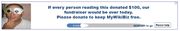 | 03:55, 30 December 2010 | Donate to MyWikiBiz.jpg (file) | 91 KB | Mockery of the Wikimedia Foundation fundraiser. Plus, we are looking into upgrading our hosting capacity, plus paying our sysop for restarts, so donations are genuinely welcome. Even if you don't donate, we'll still keep the site running... it just migh | 1 | |