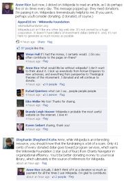 | 15:50, 4 October 2010 | Jimmy Wales pleads for help on Facebook.jpg (file) | 294 KB | Jimmy Wales can't deal with the "spam" on his "JimmyWalesFans" page on Facebook. | 1 | |