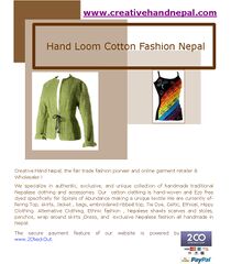 current23:30, 20 July 2009Thumbnail for version as of 23:30, 20 July 2009828 × 947 (282 KB)Creativehandnepal (talk | contribs)We specialize in authentic, exclusive, and unique collection of handmade traditional Nepalese clothing and accessories. Our cotton clothing is hand-woven and Ezo free dyed specifically for Spirals of Abundance making a unique textile We are currently off