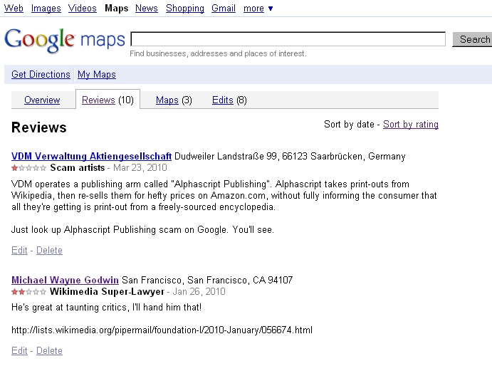 - (download) Michael Wayne Godwin review on Google Maps.jpg . . 691 × 514 . . 113 KB . . MyWikiBiz . . 03:05, 24 March 2010