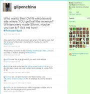 | 11:33, 11 September 2009 | Gil Penchina shyster.jpg (file) | 234 KB | Gil Penchina trying to drum up volunteers for Wikia Nswers, offering a 50-50 split of revenues. (Here on MyWikiBiz, editors keep 100% of the revenues of the ads they place in the body of their content.) | 1 | |
