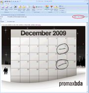 | 19:27, 7 January 2010 | CRM e-mail FAIL.jpg (file) | 367 KB | Client newsletter e-mail from PromaxBDA, delivered January 7, 2010. (Note, this was intended by the sender to act as an animated GIF file, but in the Microsoft Outlook window pane, it did not animate.) | 1 | |