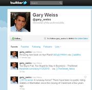 | 20:55, 21 September 2011 | Gary Weiss on Twitter.jpg (file) | 117 KB | Courtesy, Piperdown. | 1 | |