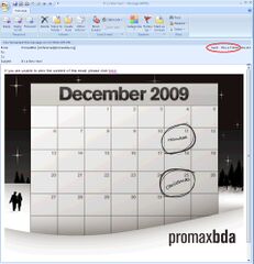 Client newsletter e-mail from PromaxBDA, delivered January 7, 2010. (Note, this was intended by the sender to act as an animated GIF file, but in the Microsoft Outlook window pane, it did not animate.)